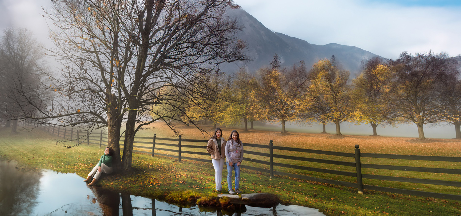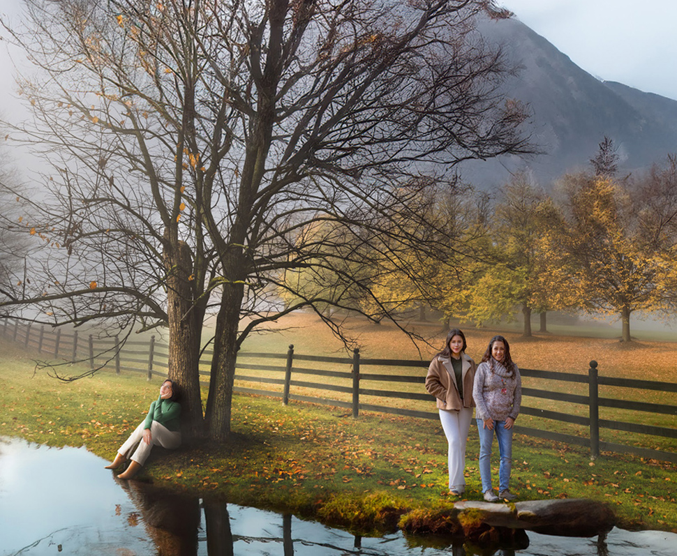 I have the ability to craft a creative family scenario for you. This example showcases how something ordinary can be elevated into something extraordinary. It’s worth noting that none of the individuals in the scene were photographed together on the same day. Additionally, the chairs and stair were meticulously designed using 3D programs to enhance the overall composition.